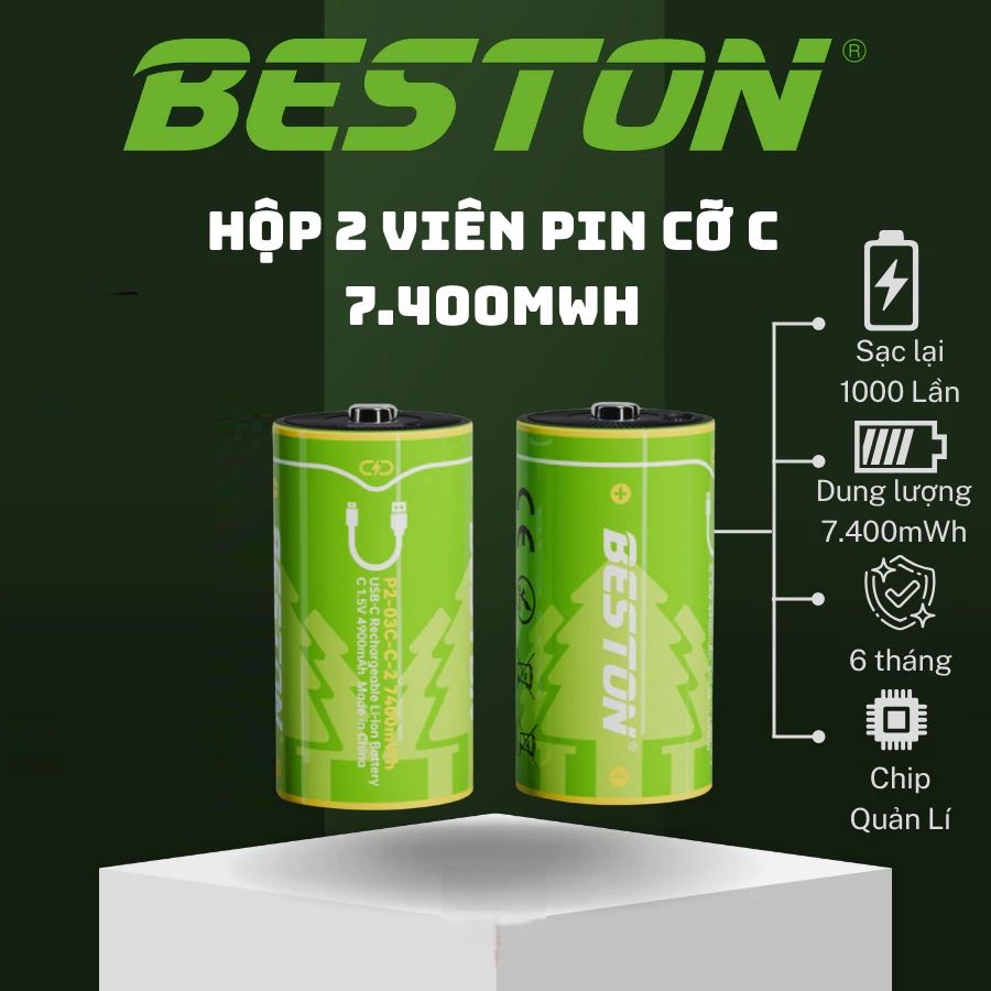 Bộ 2 pin sạc cỡ trung C Beston Lithium 1.5V 7400mWh USB-C CLC-50 P2-03C