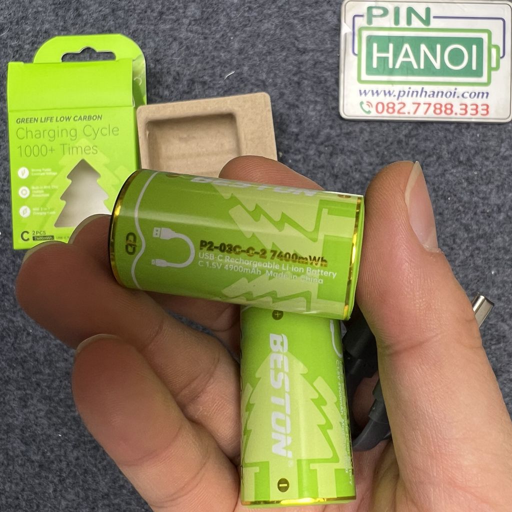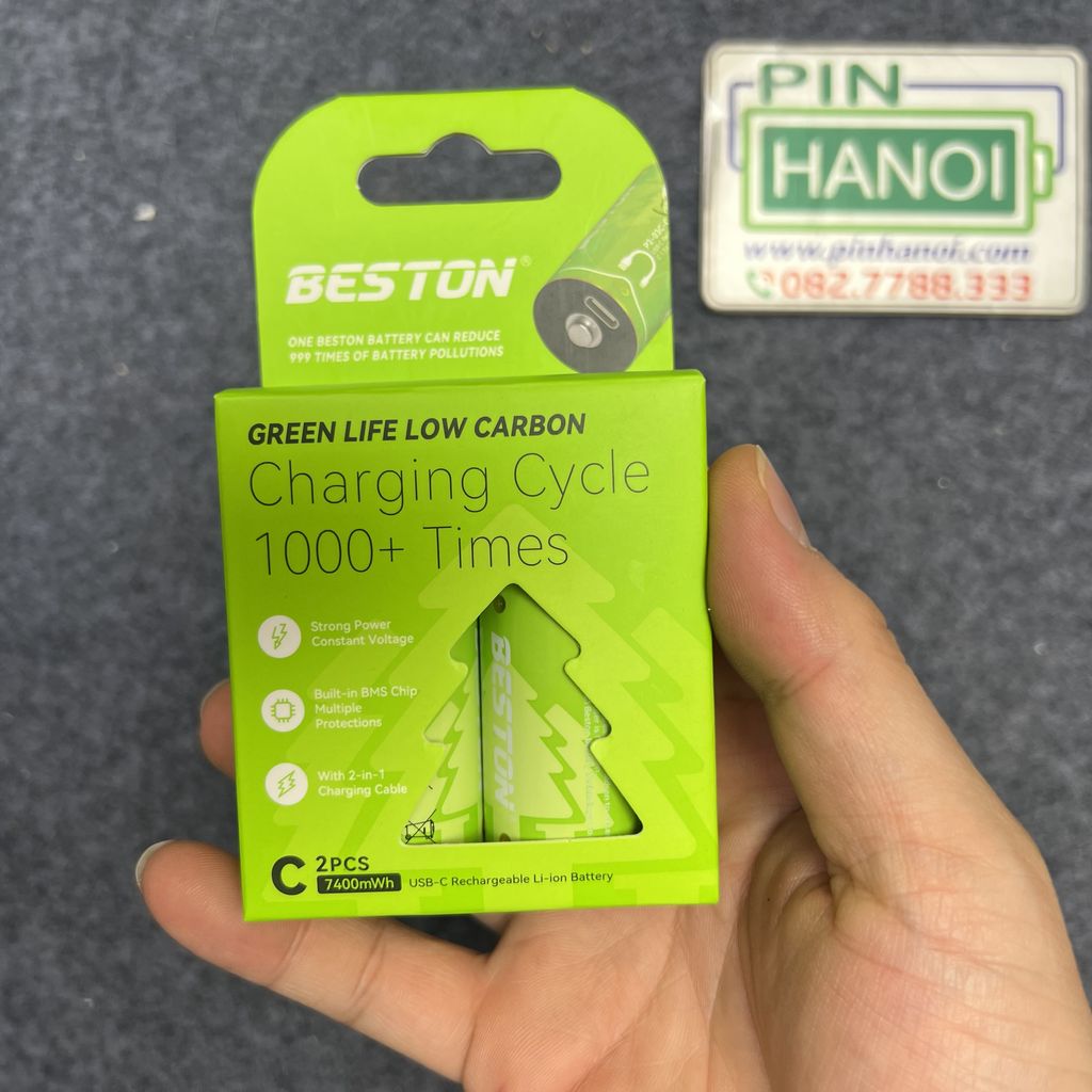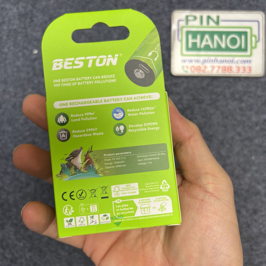 Bộ 2 pin sạc cỡ trung C Beston Lithium 1.5V 7400mWh USB-C CLC-50 P2-03C