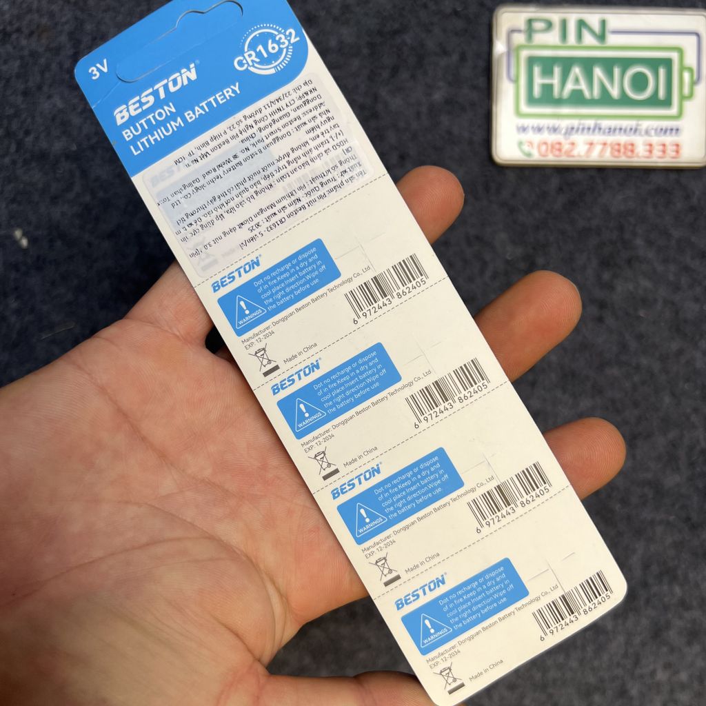 Đặc điểm: Beston là thương hiệu nổi tiếng về giải pháp năng lượng, dòng pin CR1632 của hãng nổi bật với khả năng chịu nhiệt tốt và dòng điện xả cực kỳ đều đặn.