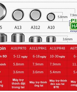 Pin dùng cho máy trợ thính có rất nhiều loại khác nhau, loại nhỏ thường dùng mau hết hơn loại lớn. Tùy theo công suất của từng loại máy, và thời gian sử dụng trong ngày khiến pin có tuổi thọ dài ngắn khác nhau. Thông thường, pin máy trợ thính thường dùng được từ 5-14 ngày, nếu mỗi ngày sử dụng 16 giờ.