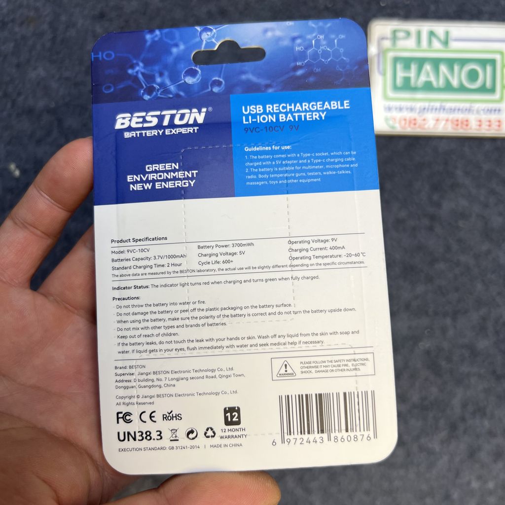| Loại pin | Pin vuông (9V) |