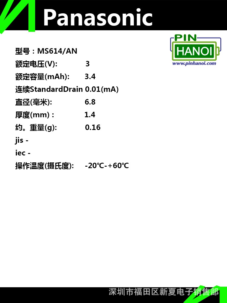 Pin sạc Panasonic MS614/AN 3V 3.4mAh