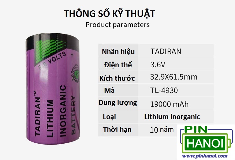 Pin TADIRAN TL-4930 SB-D02 3.6V 19000mAh