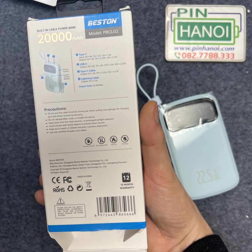 Sạc dự phòng 20000mAh 22.5W Beston PBCL02 – Tích hợp cáp, Sạc nhanh PD/QC