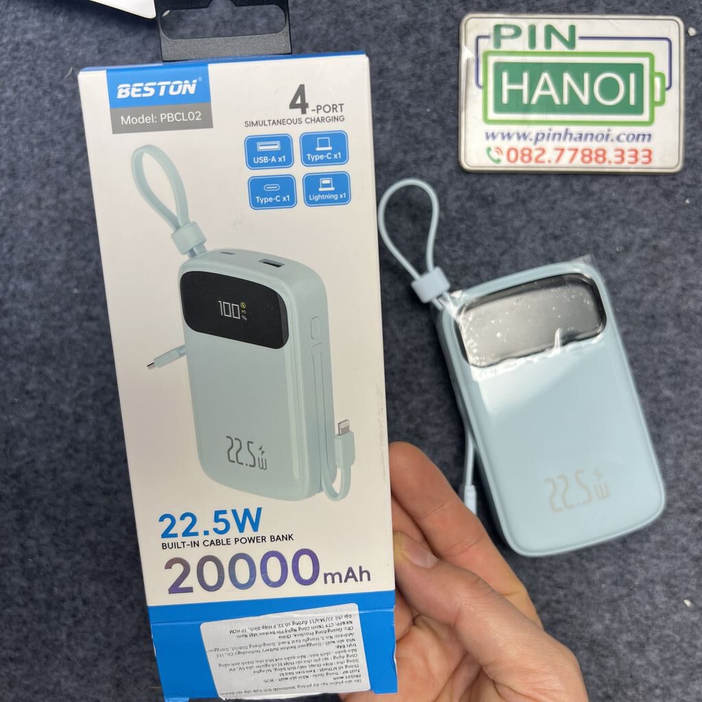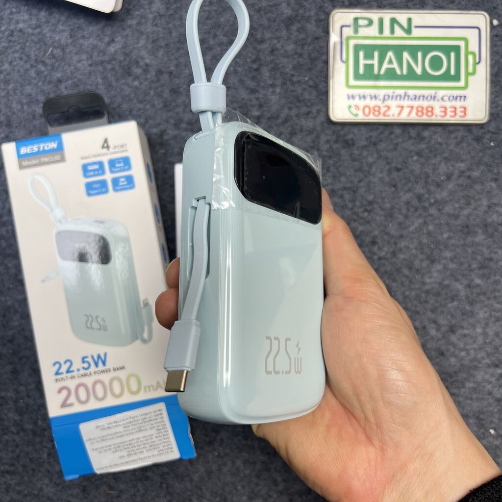 Sạc dự phòng 20000mAh 22.5W Beston PBCL02 – Tích hợp cáp, Sạc nhanh PD/QC