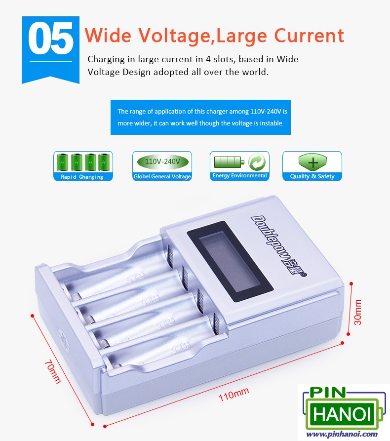 - Bộ sạc thông minh DoublePow DP-K-98 có màn hình LCD hiển thị