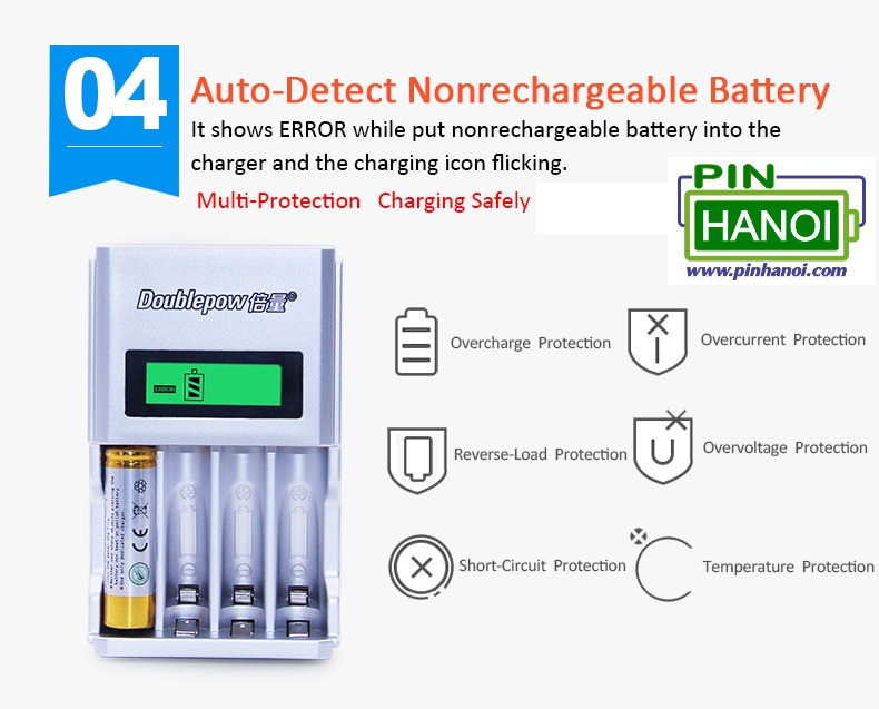 - Có chế độ bảo vệ chống đảo ngược cực khi lắp ngược pin