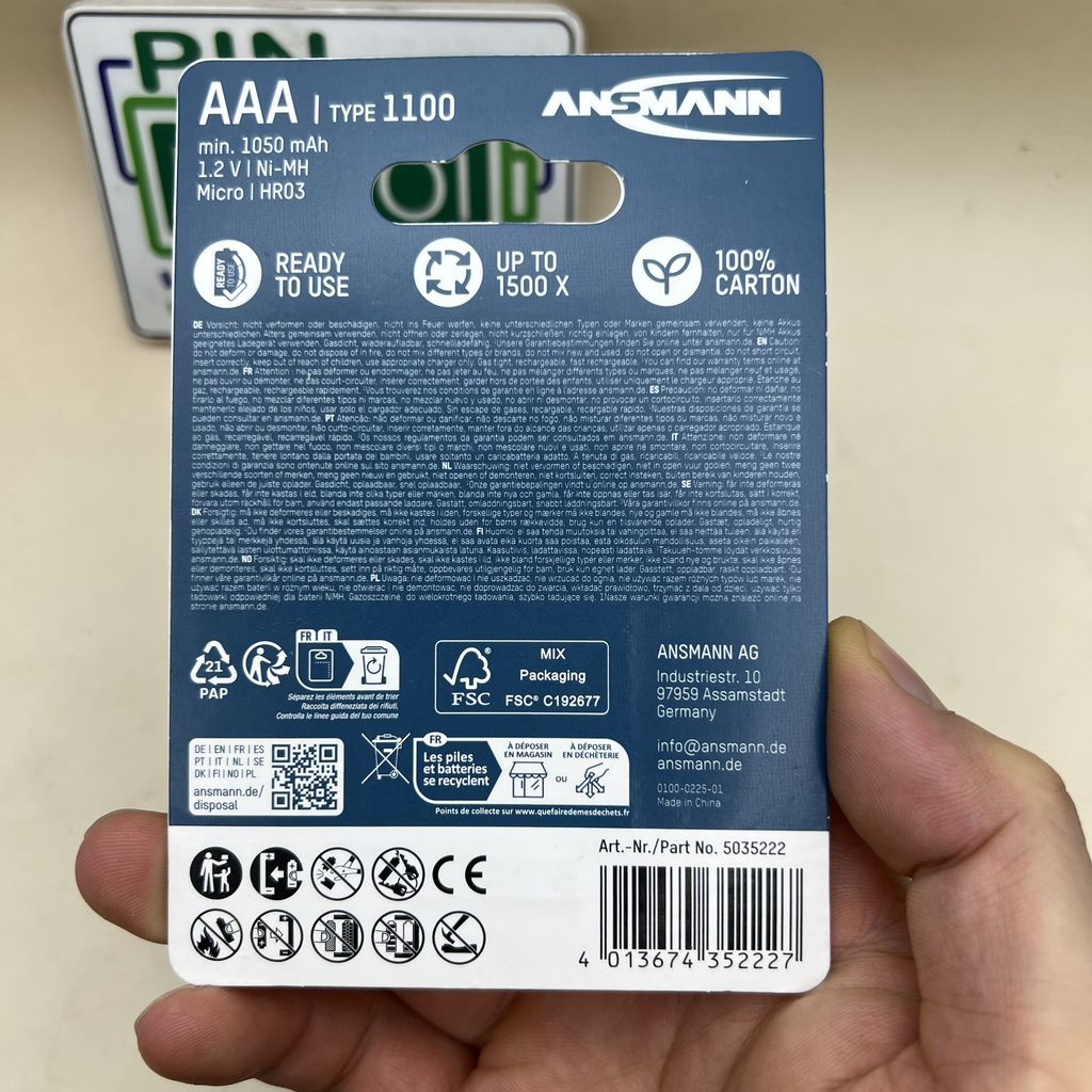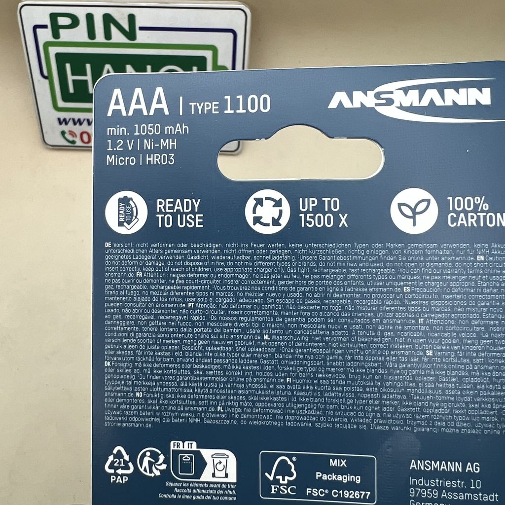 Vỉ 2 pin sạc ANSMANN Pin Đũa NiMH HR03 AAA 1100mAh BL2 5035222