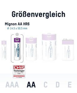 Về chất lượng, Pin Li-ion AA AMSMANN được (chip.de) hiệp hội tư vấn, đánh giá các sản phẩm tiêu dùng tại Đức bình chọn là sản phẩm tốt nhất trong 9 sản phẩm tương tự có trên thị trường