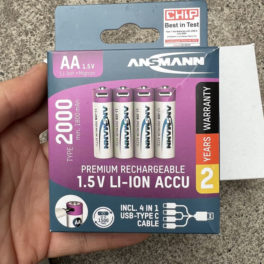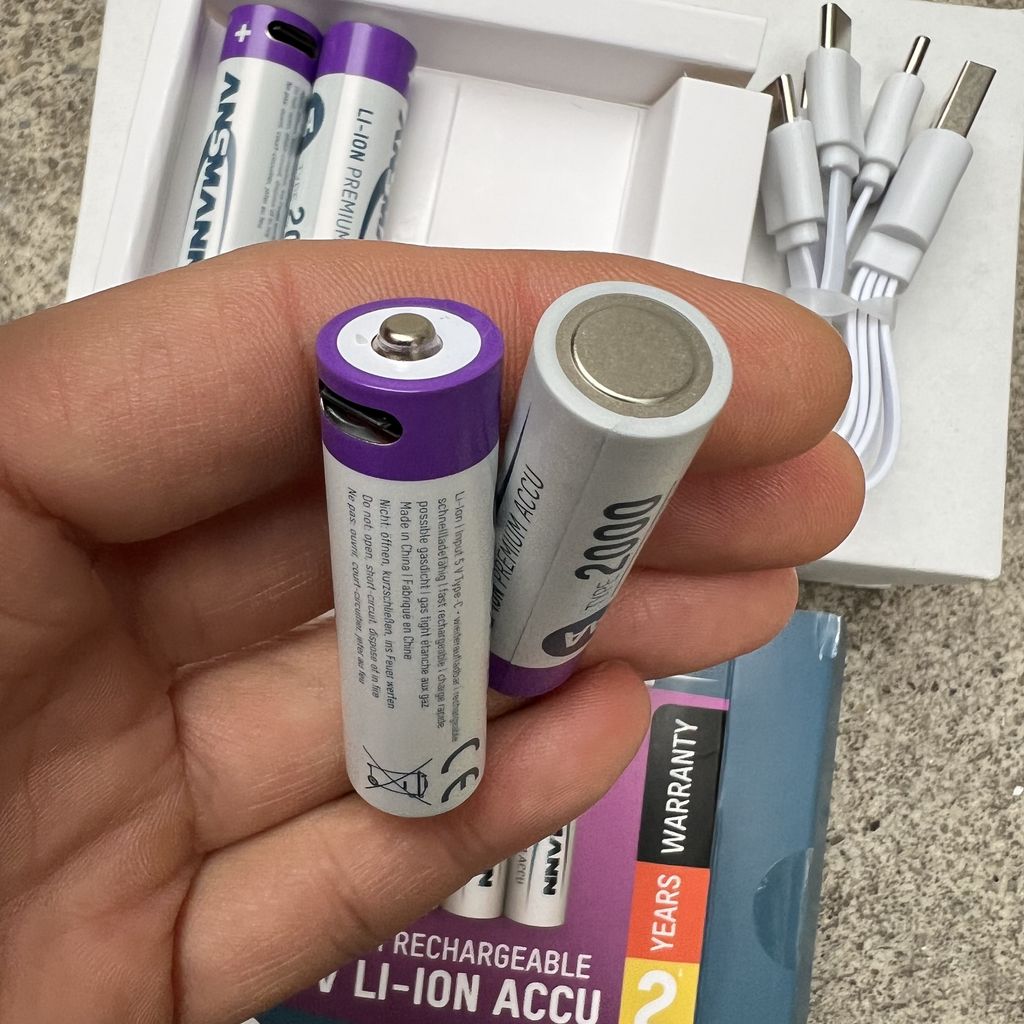 Qua cổng sạc USB Type-C tích hợp, không cần thêm bộ sạc nào nữa! Cáp USB-C phù hợp đã bao gồm trong gói hàng. Điều này cho phép sạc 4 pin AA cùng lúc chỉ bằng một cáp. Điều này có nghĩa là chúng tôi có thể đảm bảo sạc an toàn và dễ dàng thông qua tất cả các tùy chọn sạc USB có sẵn như máy tính xách tay, sạc dự phòng, bộ sạc USB cho ổ cắm hoặc ô tô hoặc bộ sạc USB tích hợp trên tường hoặc trong ô tô.