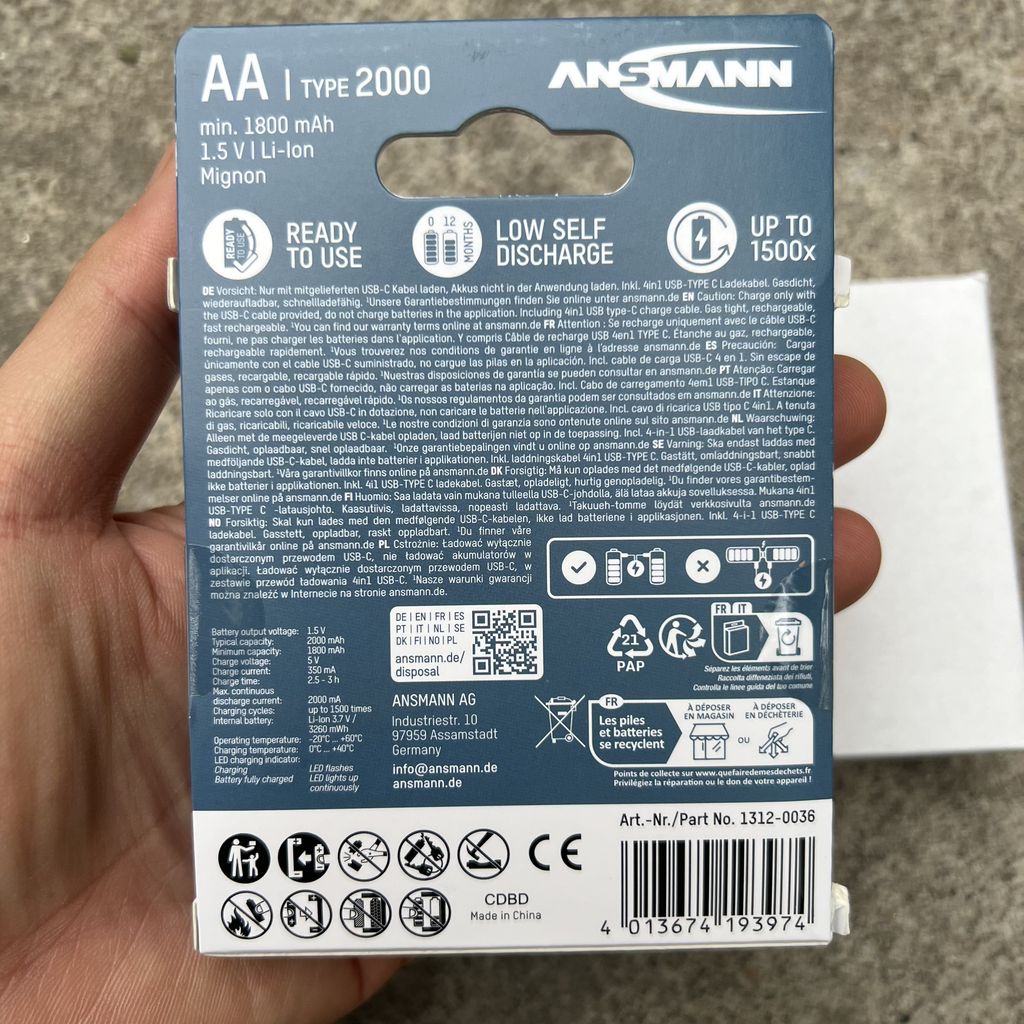 Pin sạc AA Li-Ion ANSMANN cực kỳ bền và có thể sạc lại tới 1200 lần, ngay cả trong điều kiện khắc nghiệt. Nhờ tỷ lệ tự xả rất thấp, pin giữ được năng lượng trong thời gian dài ngay cả khi không sử dụng. Ngoài ra, trọng lượng của cell Li-ion thấp hơn nhiều so với các công nghệ pin thông thường (ví dụ NiMH/PB) có cùng hiệu suất.